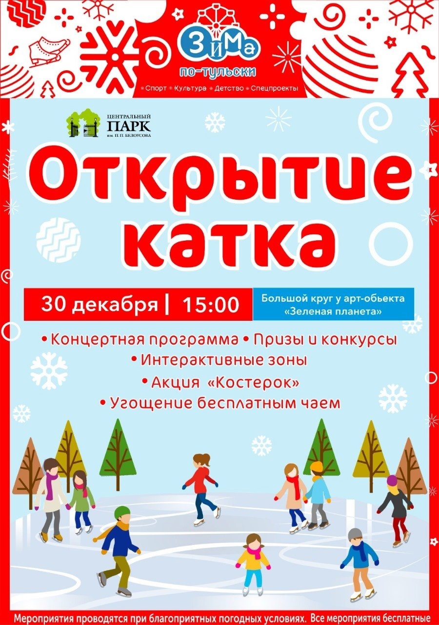 Туляков приглашают на открытие катка «У Зеленой планеты» в Центральном парке. Об этом сообщает пресс-служба парков.