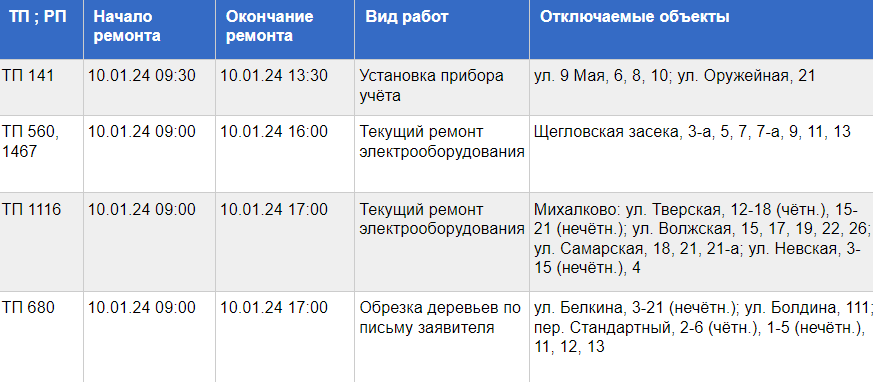 Отключение электричества связано с плановыми работами по текущему ремонту электрооборудования, обрезке деревьев и установке прибора учета.