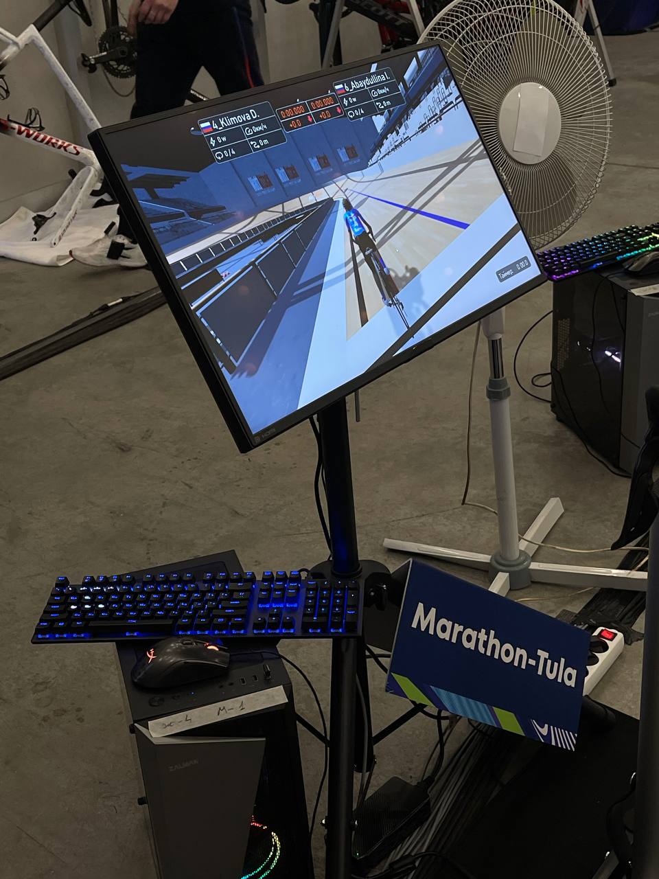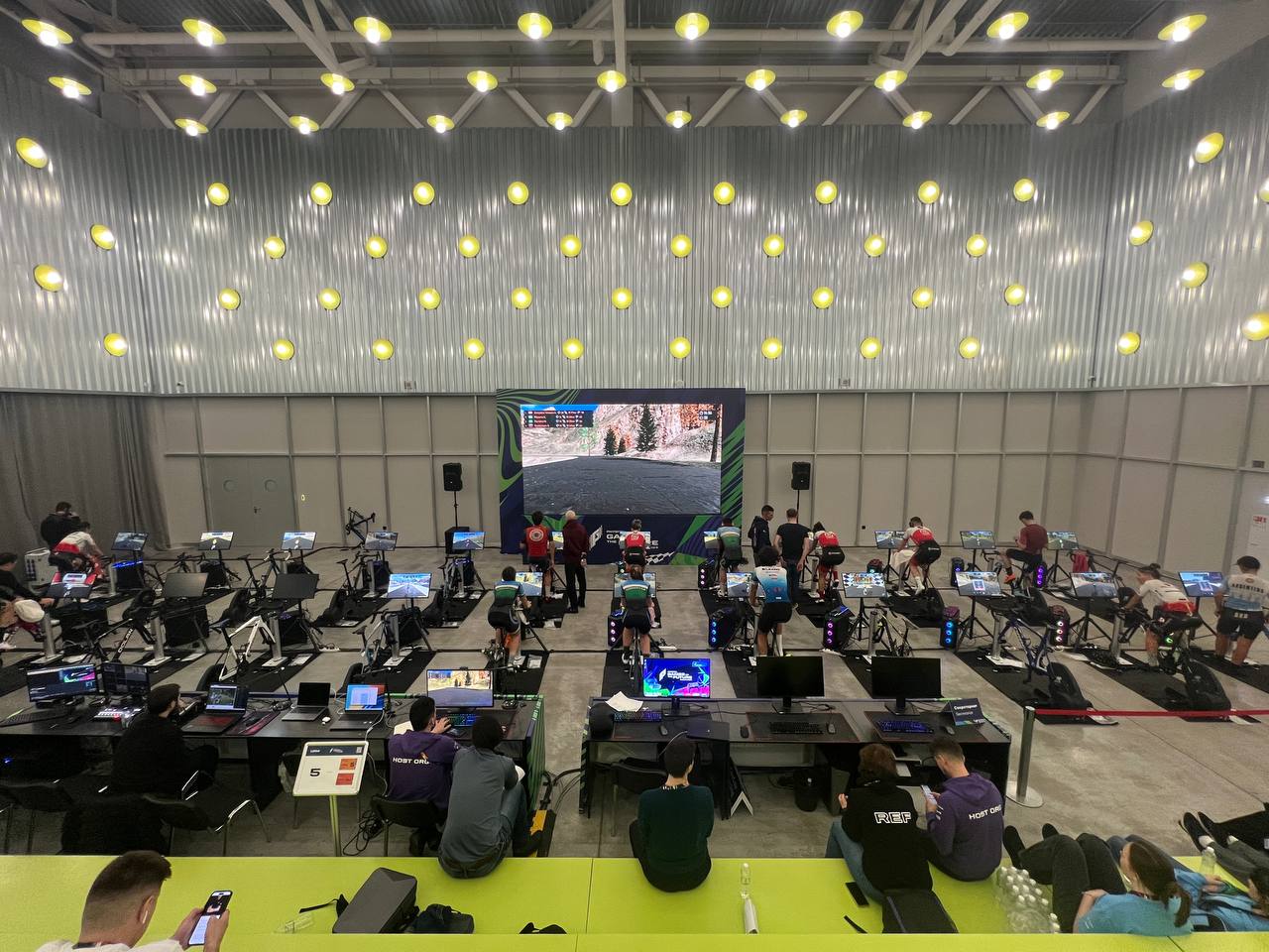 Спортсмены соревновались на велостанке в виртуальной реальности