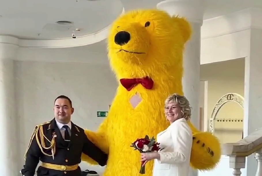 7 марта Александр и Александра официально стали мужем и женой. На свадьбе молодоженов и гостей развлекал аниматор в костюме желтого медведя.