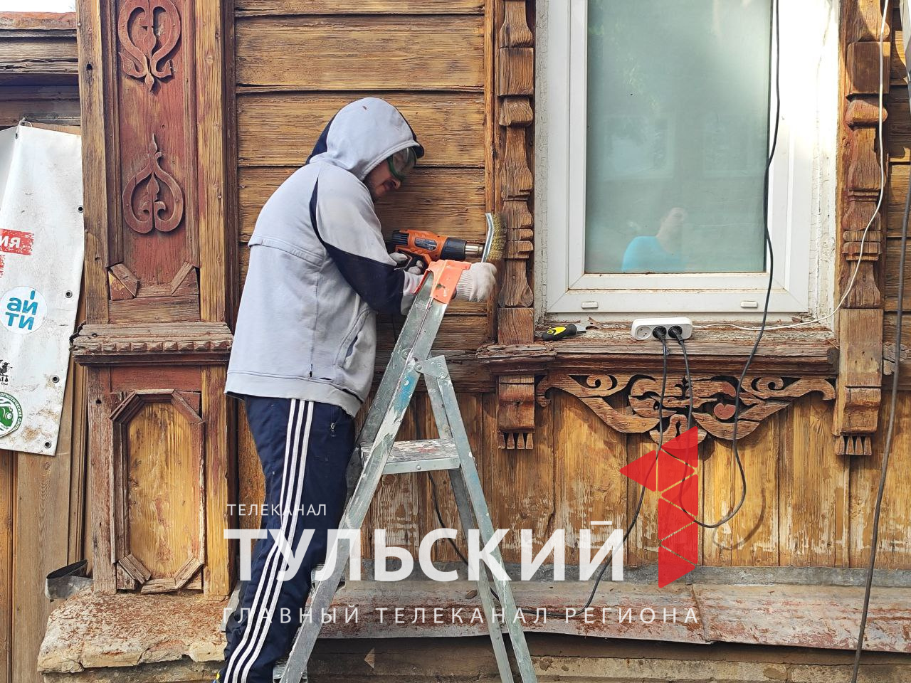 Реставрацию фасадов исторических зданий начали с жилого дома №34 по улице Гоголевской. Пока снимают краску с наличников – так новая будет ровнее ложиться и медленнее трескаться. Участок в начале XX века принадлежал Дроновой Марии Викентьевне, браковщице Императорского тульского оружейного завода. Дом был построен ею же в 1904 году.