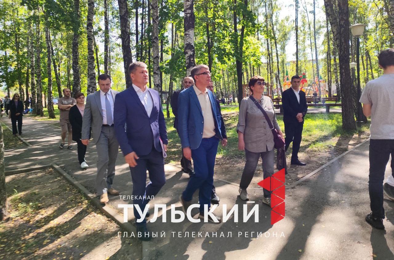 Дмитрий Миляев с рабочим визитом посетил Венев. Первой точкой стал парк имени Стихарева. С 2020 года на его территории проводят 3-этапную программу благоустройства в рамках программы «Формирование комфортной городской среды» нацпроекта "Жилье и городская среда". По ней в парке поменяли покрытие дорожек и детских площадок, установили детский городок, песочницу, горку, качели. Заасфальтировали дорожки и провели озеленение.