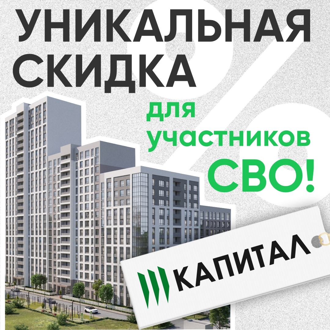 Застройщик предоставляет для участников СВО уникальную скидку 10% на покупку квартиры (или скидку 5%, которая суммируется с другими акциями). Звучит солидно!