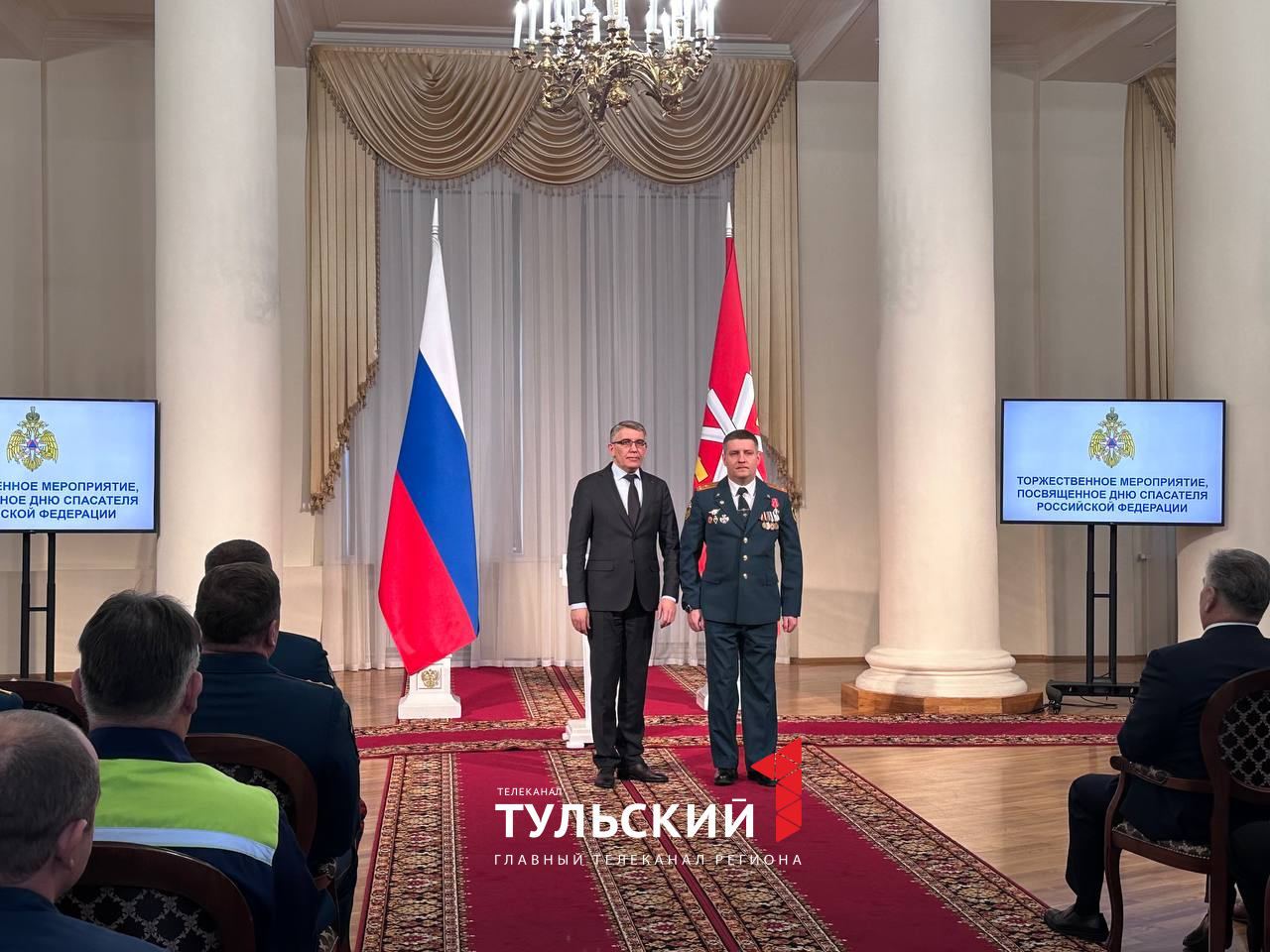 Из рук Дмитрия Миляева 15 отличившихся спасателей получили государственные и региональные награды - медали "Честь и мужество" и "Трудовая доблесть" III степени, а также благодарность Губернатора Тульской области.