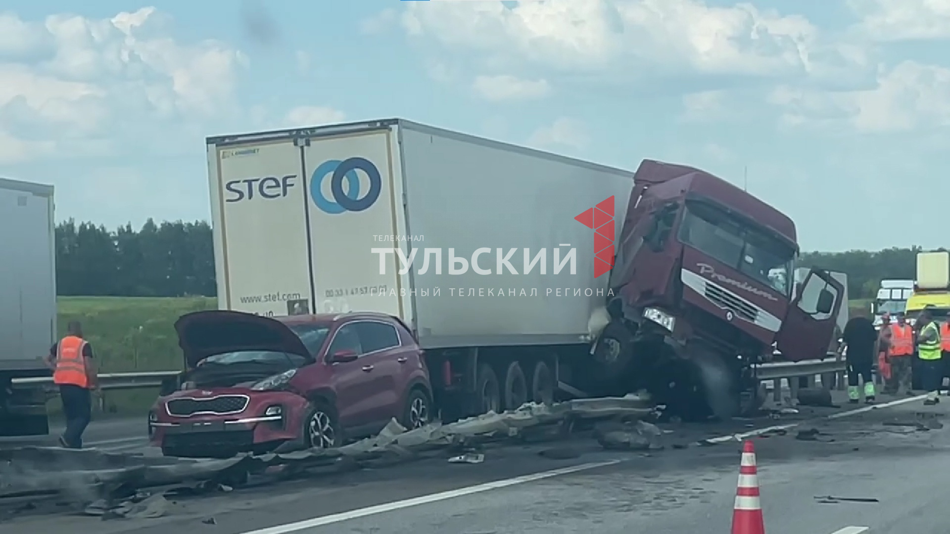 Грузовая машина попала в серьезное ДТП на трассе М-4 "Дон" под Веневом. Об этом сообщает телеграм-канал "Только новости".