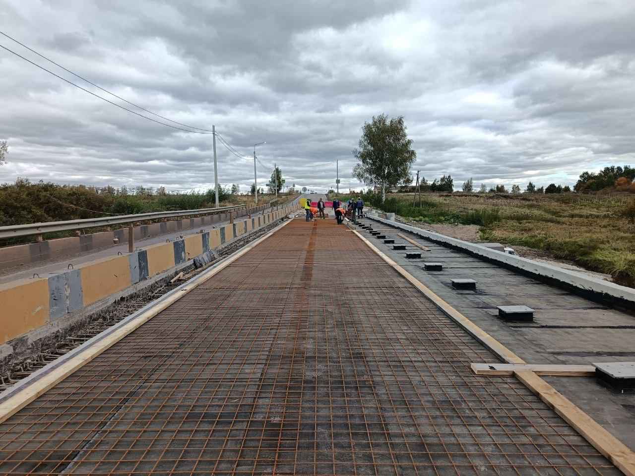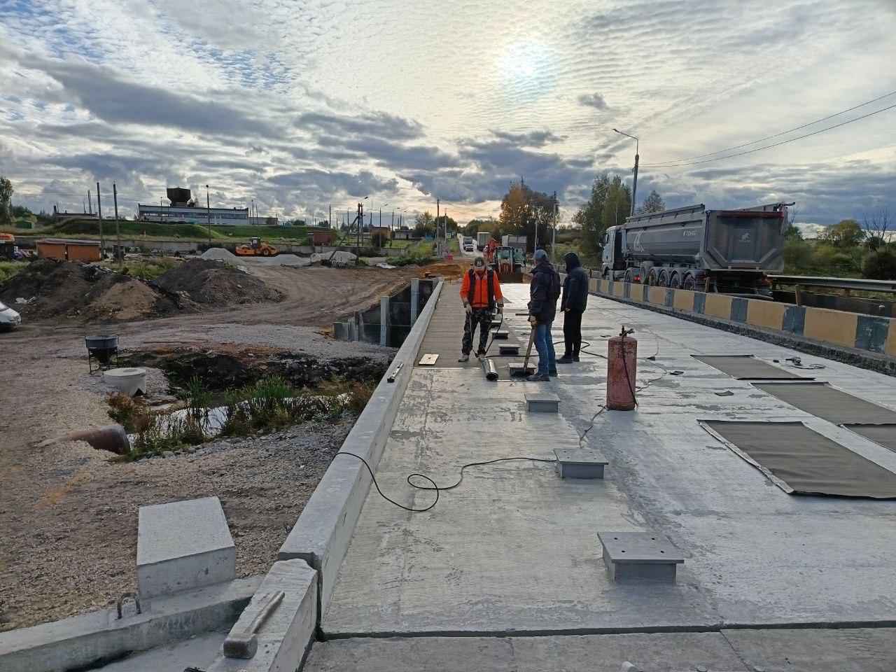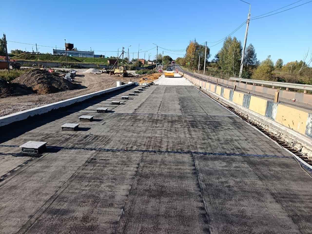На сегодняшний день успешно выполнена первая очередь работ: устроено щебёночное основание дорожной одежды на подходах к мосту, а также восстановлен слой гидроизоляции мостового полотна.