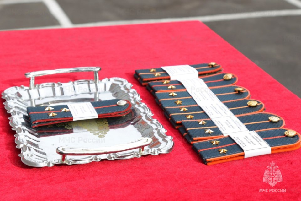 Сотрудники ведомства получили погоны в честь присвоения первых и очередных специальных званий.
