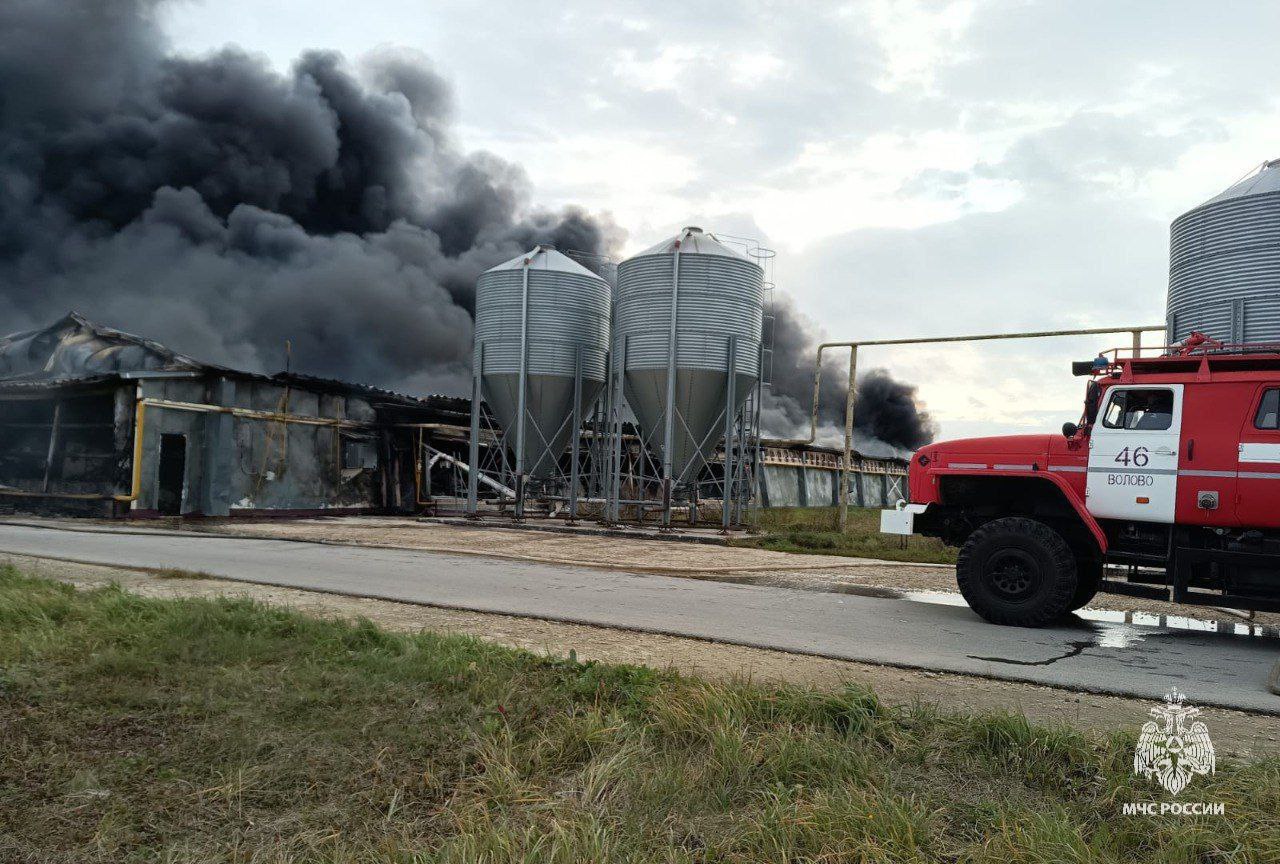Утром 17 октября на предприятии "Воловский бройлер" произошел крупный пожар. Об этом сообщили очевидцы в социальных сетях.