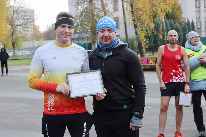 Вместе со всеми участниками он пробежал дистанцию 5 километров, после чего вручил благодарности регионального минспорта команде "Тульский марафон".