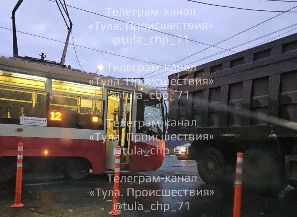 В Туле на проспекте Ленина трамвай столкнулся с грузовиком. Кадрами поделились очевидцы в социальных сетях.