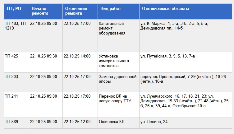 Часть Тулы останется без света 22 октября. Об этом сообщают «Тульские городские электрические сети».