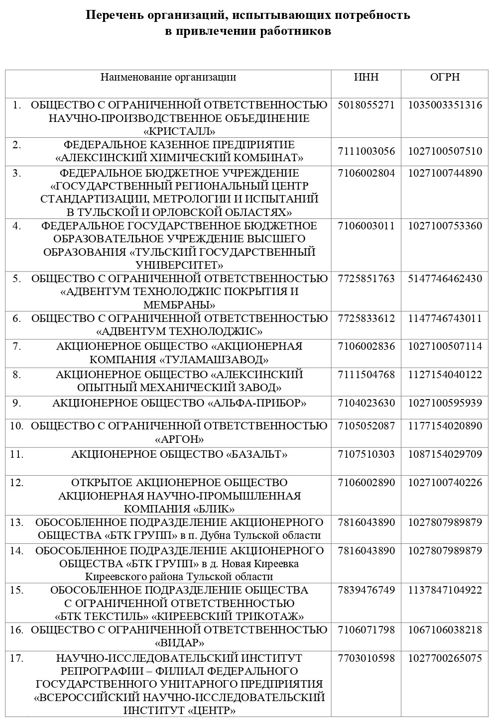 В Тульской области опубликовали перечень предприятий, которые наиболее остро нуждаются в новых рабочих кадрах. Соответствующий документ опубликован на официальном сайте правительства региона.