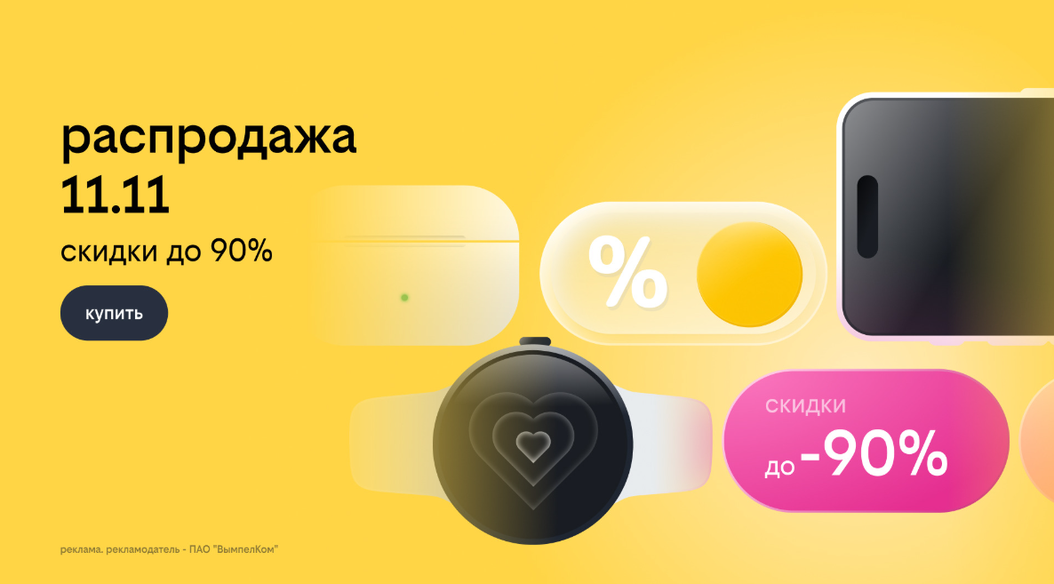 Билайн запускает ежегодную распродажу 11.11 — один из самых ожидаемых периодов осеннего шопинга. С 21 октября по 12 ноября 2025 года в интернет-магазине оператора доступны смартфоны, часы, наушники, колонки, аксессуары и другие устройства со скидками до 90%.