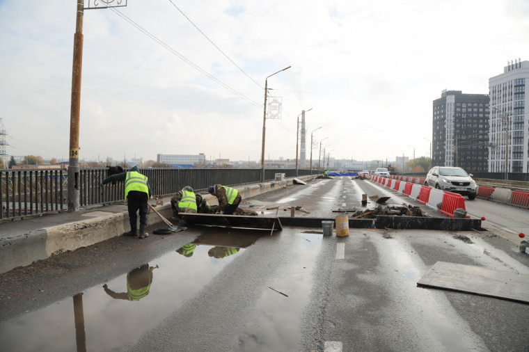 Рабочие приступят к ремонту правой части моста – она ведет в центр города. Для движения автомобилей выделят две полосы – по одной в каждом направлении.