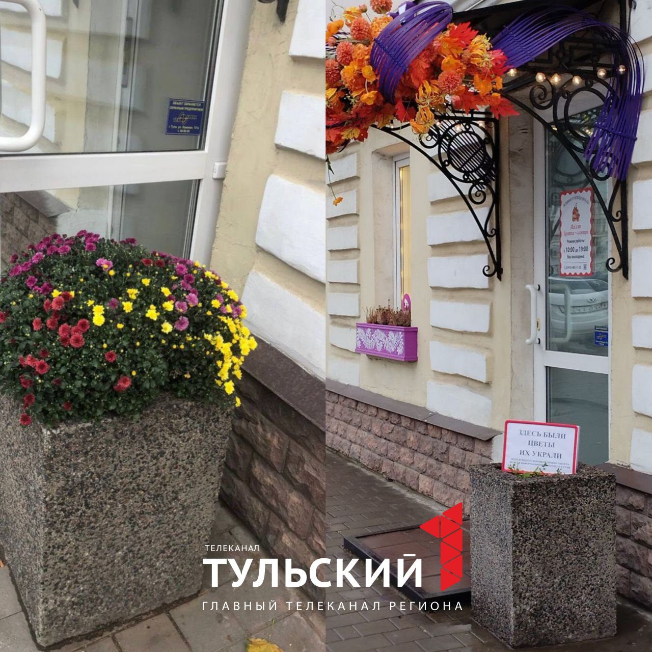 Сейчас на месте цветов красуется табличка: «Здесь были цветы». В полицию хозяйка магазина обращаться не стала.