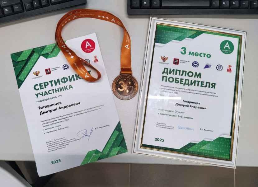Дмитрий Татаринцев занял третье место в Национальном чемпионате по проф. мастерству "Абилимпикс"