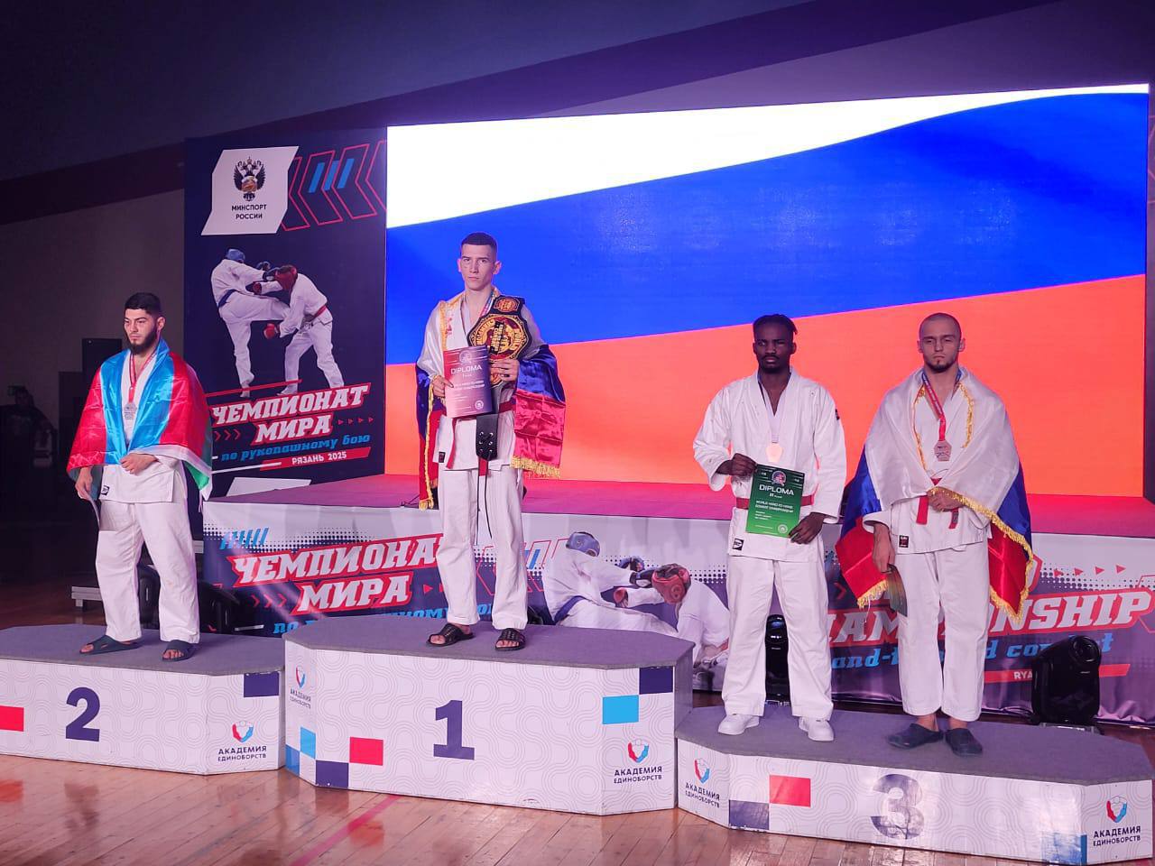В весовой категории до 73 килограммов среди мужчин чемпионом мира стал Роман Савыкин. Он одержал 4 досрочные победы над бойцами из Таджикистана, Казахстана, России и Азербайджана.