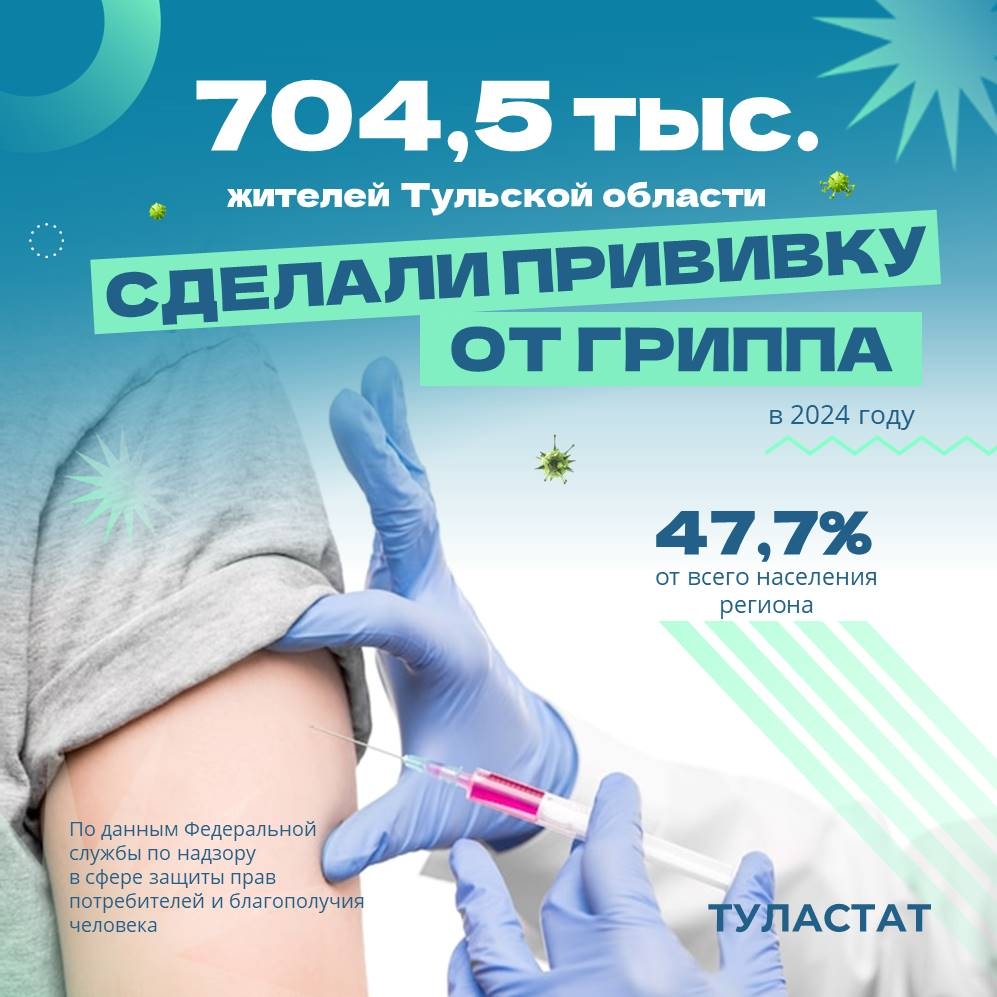 В 2024 году 704.5 тысяч жителей Тульской области вакцинировались от гриппа. Об этом сообщает "Туластат".