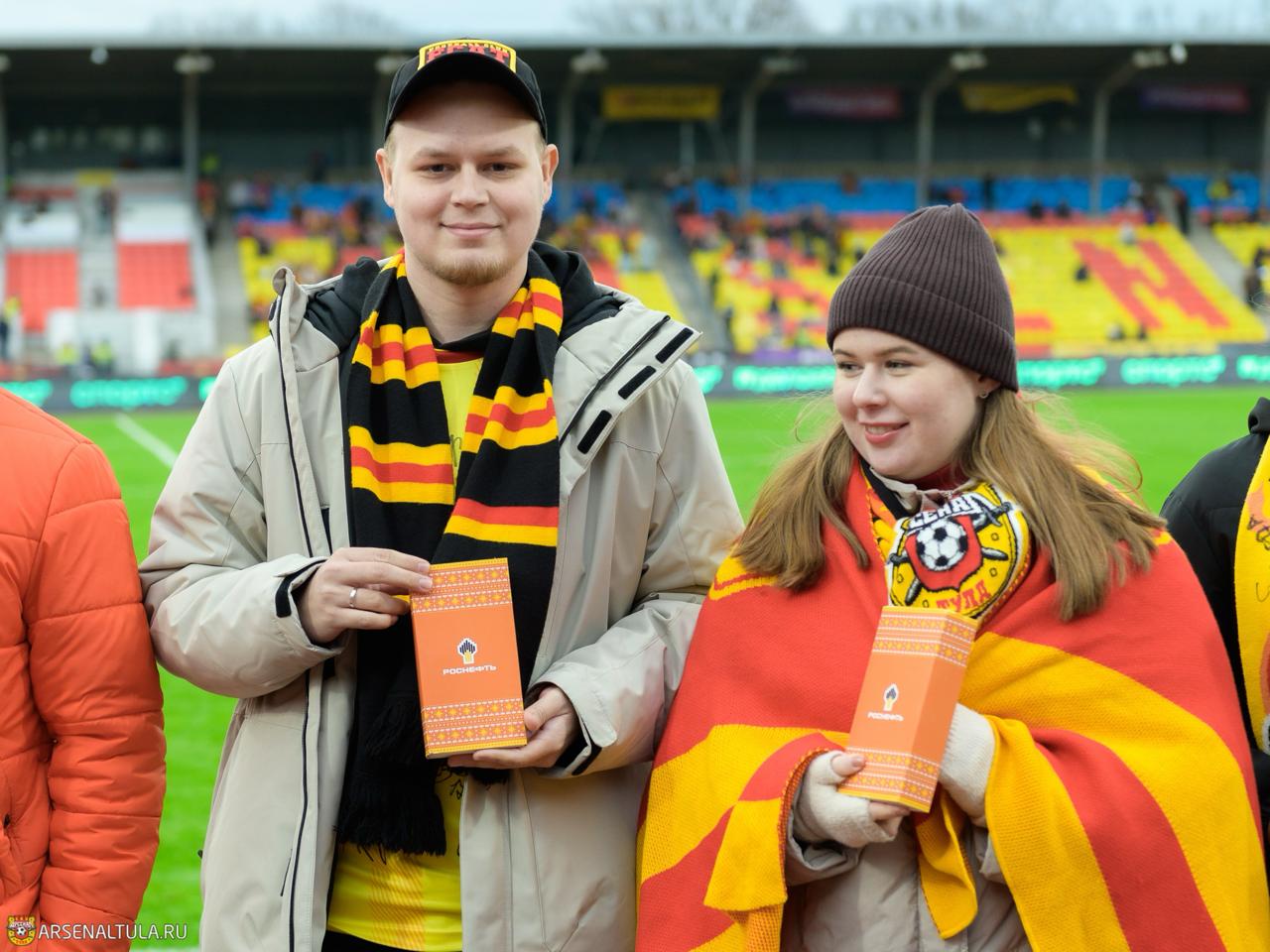 В номинации "Любовь к "Арсеналу" победу одержали Иван и Татьяна Кирковы — им вручили пауэрбанки.