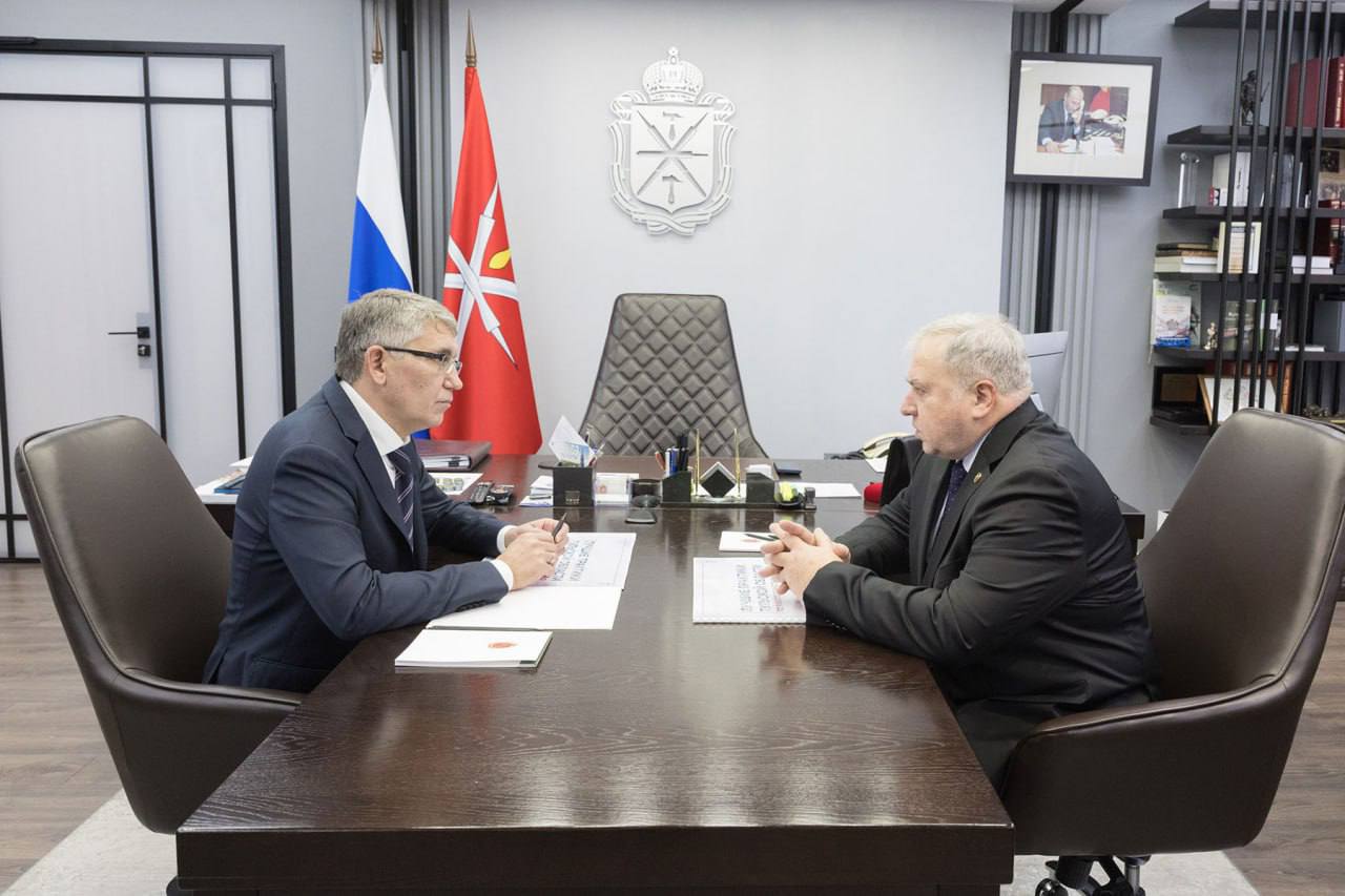 10 ноября Губернатор Тульской области Дмитрий Миляев провел рабочую встречу с председателем комиссии по безопасности Общественной палаты РФ Михаилом Аничкиным.