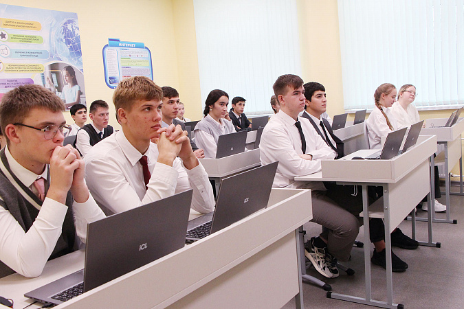 В Центре образования № 14 урок провел Роман Борисов, заместитель министра цифрового развития и связи Тульской области, и Сергей Минаев, заместитель министра образования региона.