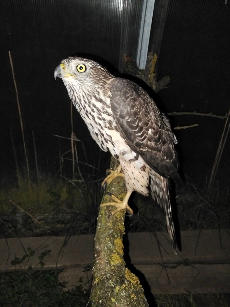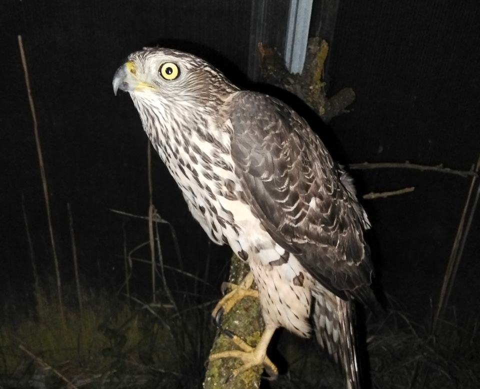На помощь травмированной птице пришла пожилая женщина. Она ухаживала за молодым ястребом и кормила его куриными шейками.