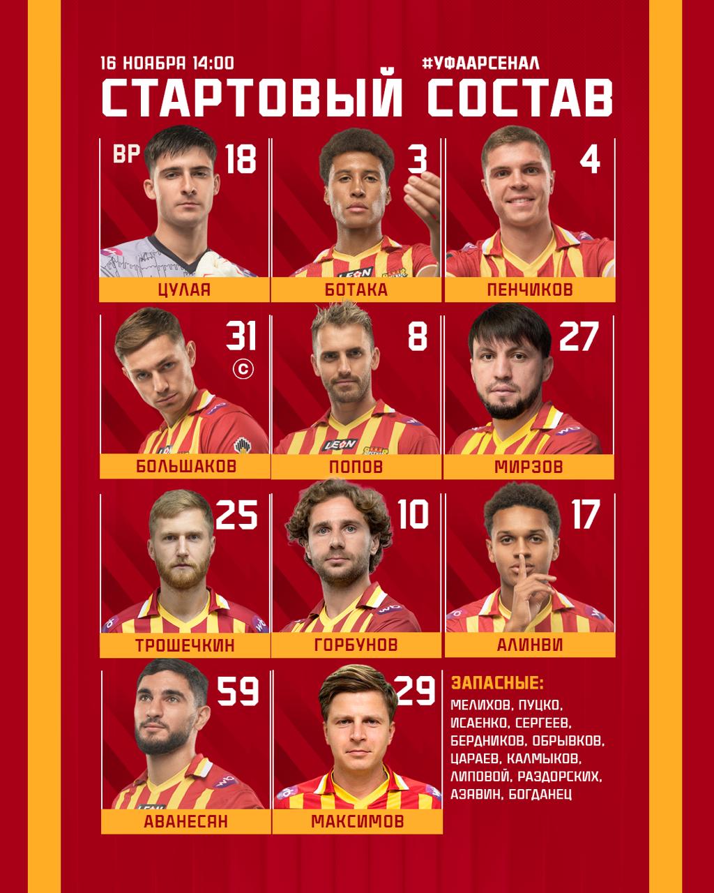 16 ноября в 14-00 в Уфе стартует матч 19-го тура Первой лиги. За победу будут бороться местная "Уфа" и тульский футбольный клуб "Арсенал".