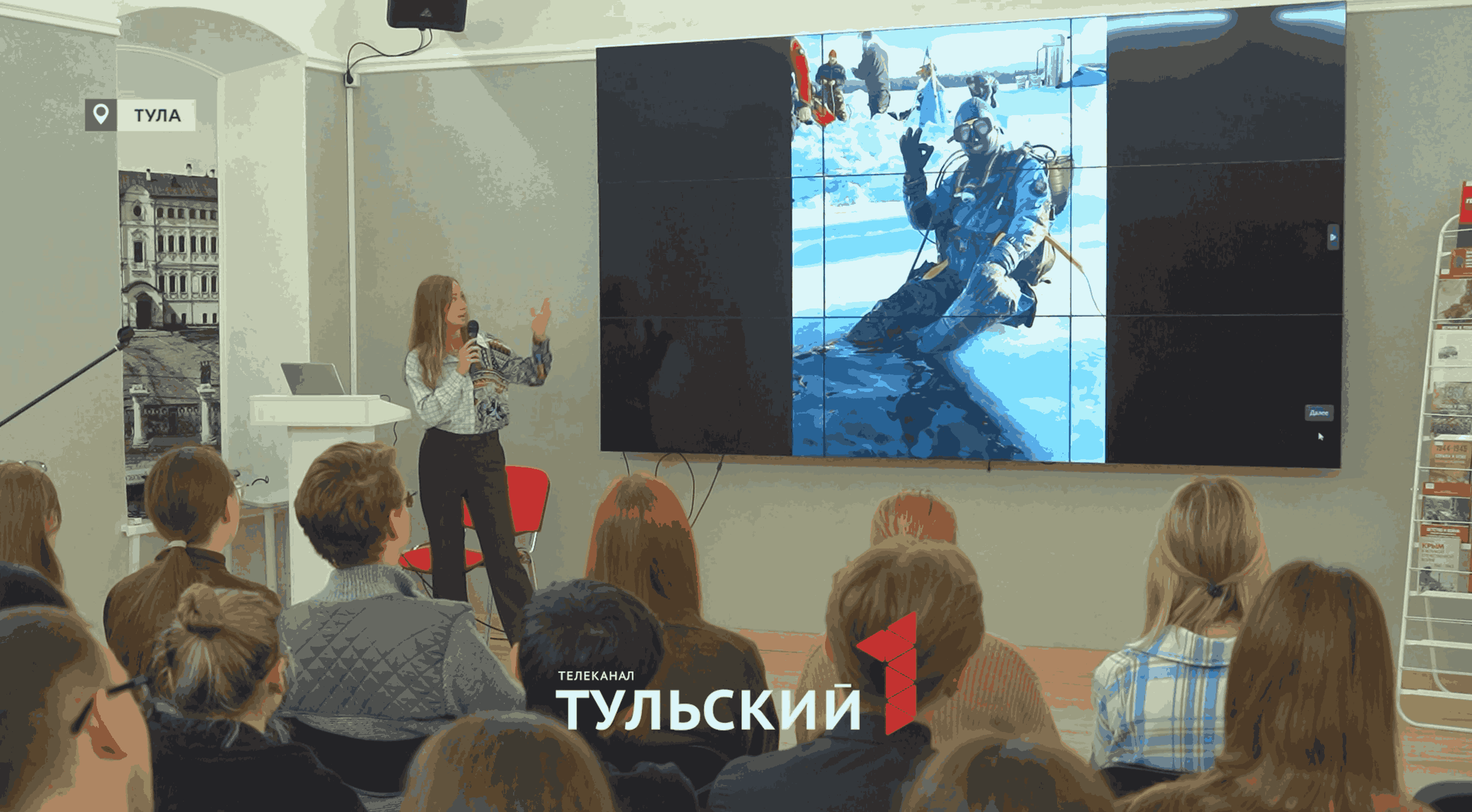 Это тот случай, когда презентацию к лекции по истории собирали из семейного архива. Студентам Тульского педагогического университета имени Льва Толстого Галина Борисова показывает личные фотографии. Вот уже 10 лет эта хрупкая женщина изучает морское дно. В ее личном рекорде глубина 38 метров. Но как объясняет сама подводный археолог, прежде чем спустить водолазов, местность долго изучают при помощи техники.