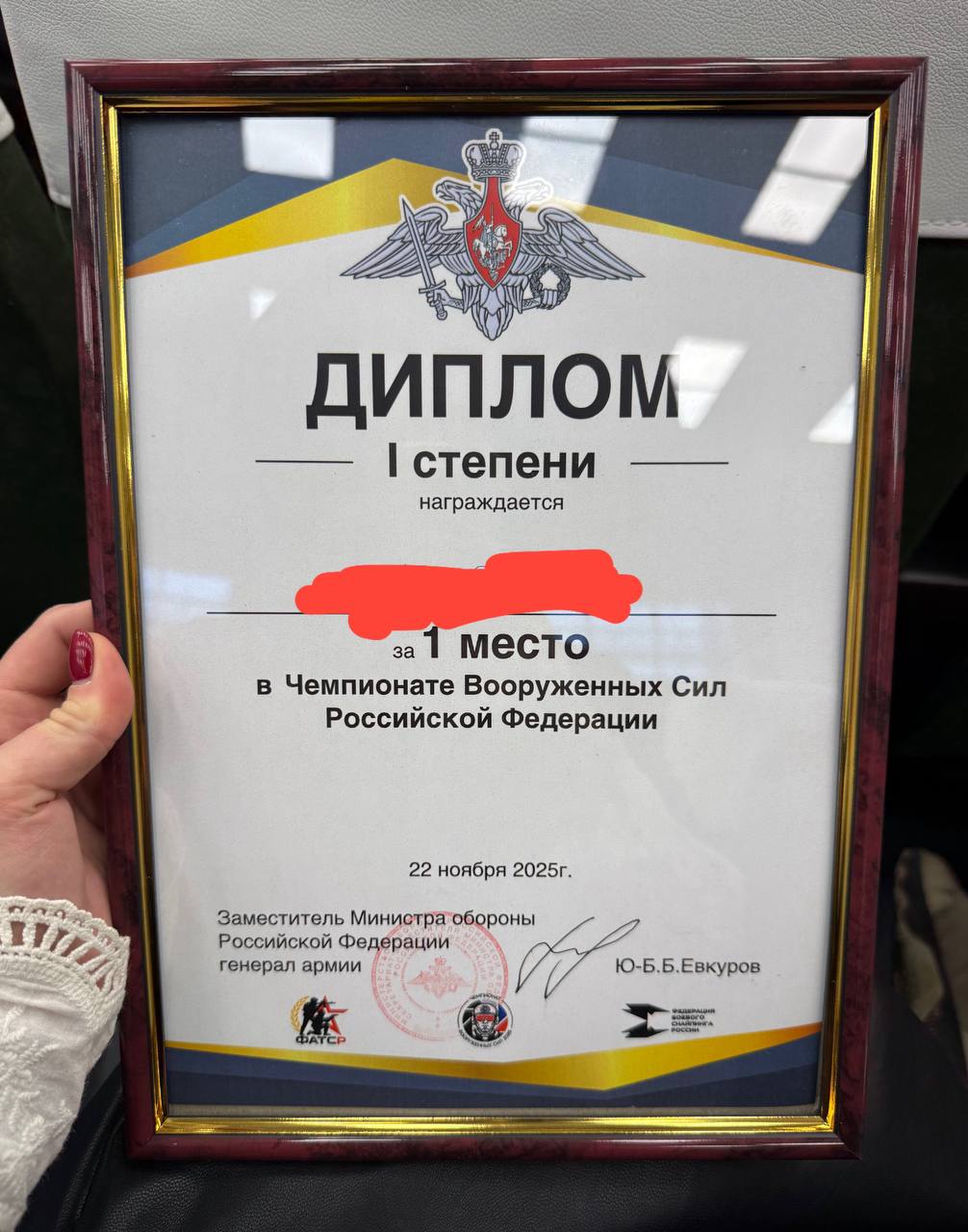 Представители команды поблагодарили заместителя министра обороны России Юнус-Бека Евкурова за приглашение. Он же подписал команде диплом за 1 место.