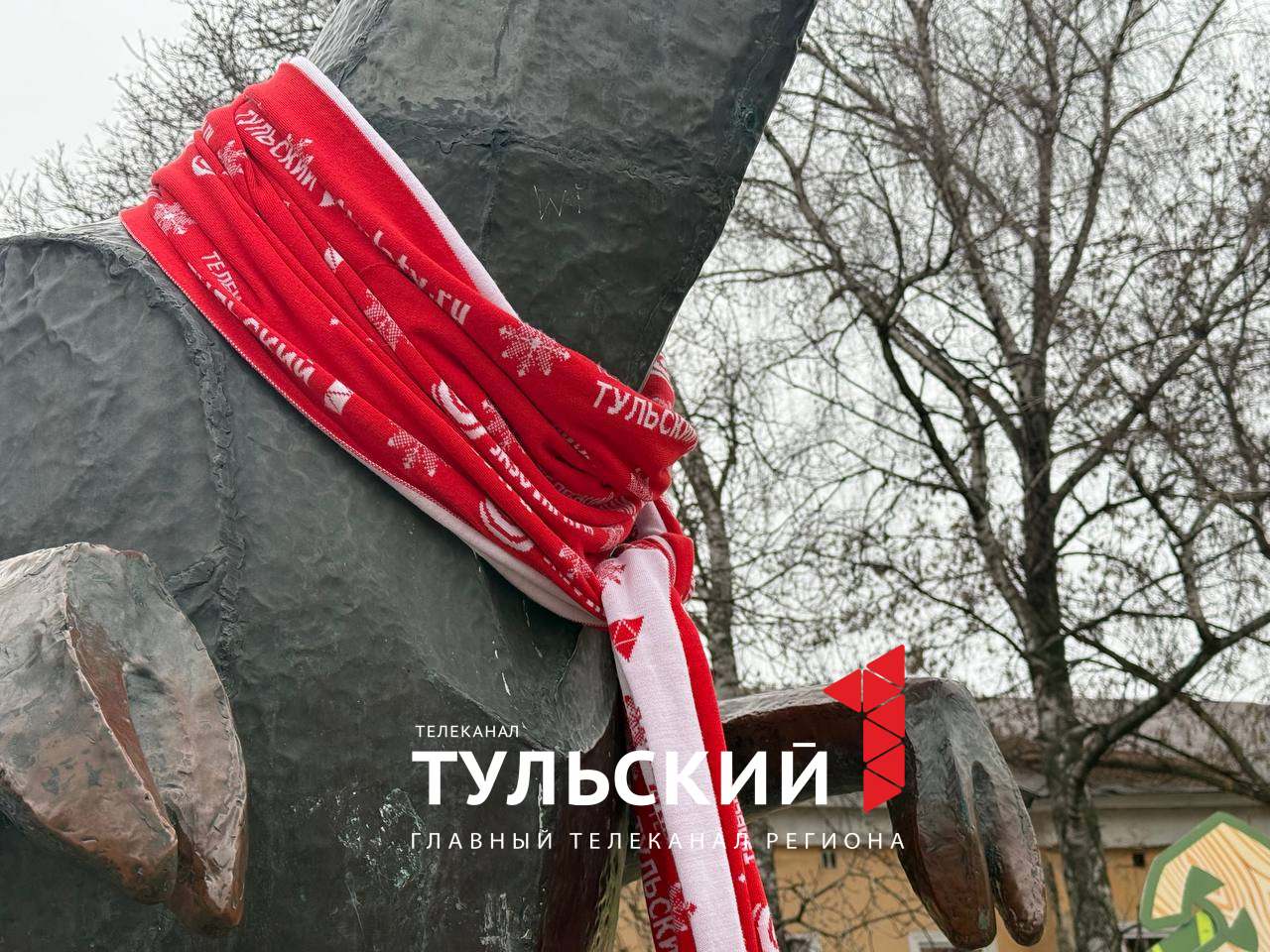 Знаменитая «Тёща» из экзотариума примерила шарф телеканала «Первый Тульский». По традиции вот уже 5 лет подряд Серпентину Юрьевну наряжают в первый день зимы. Скульптура напоминает тулякам, что несмотря на то, что снега еще нет, утепляться все же пора.