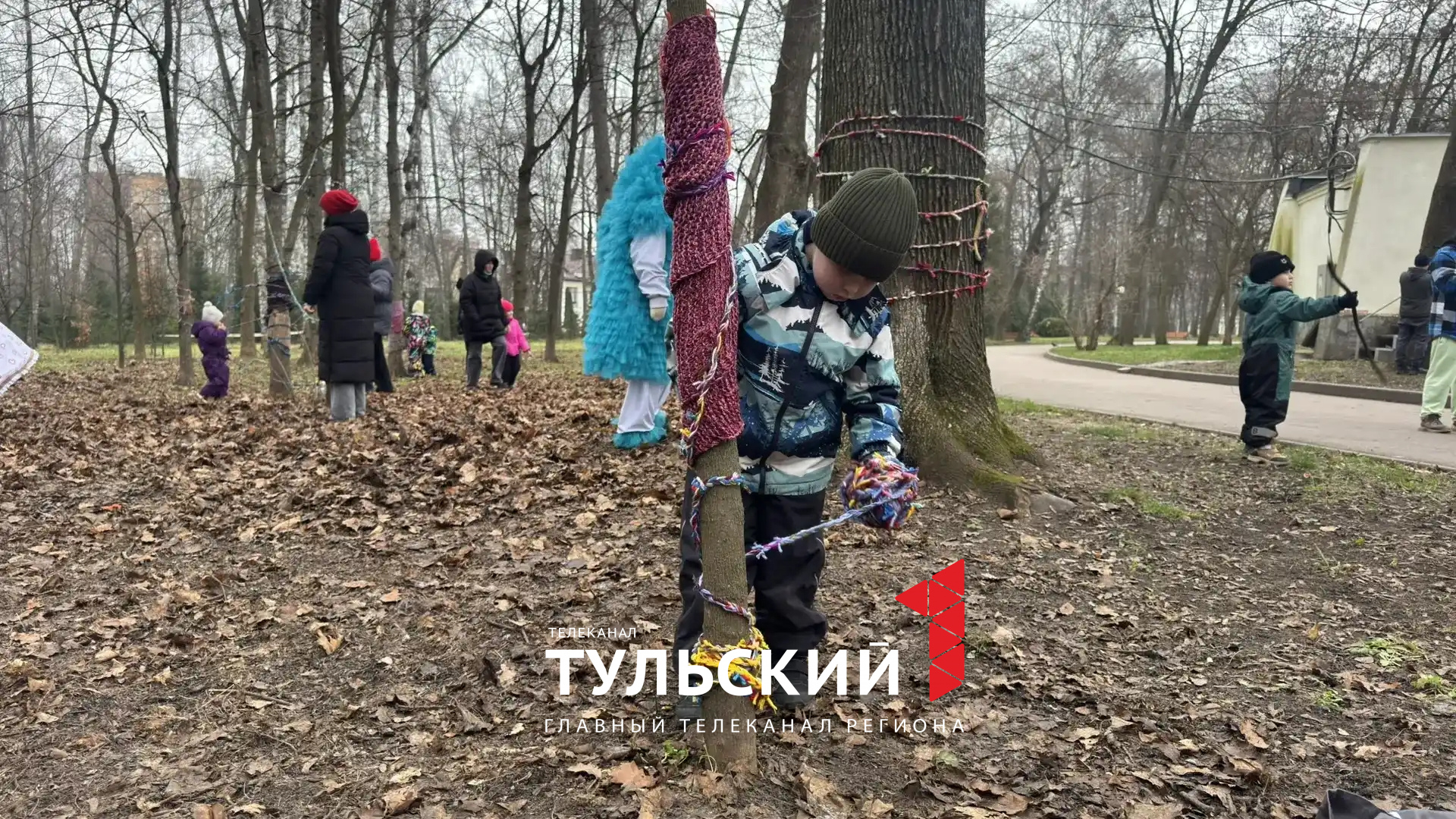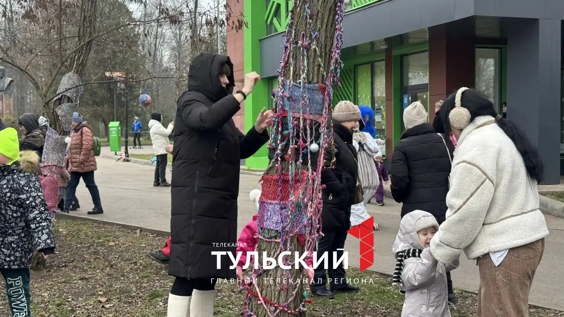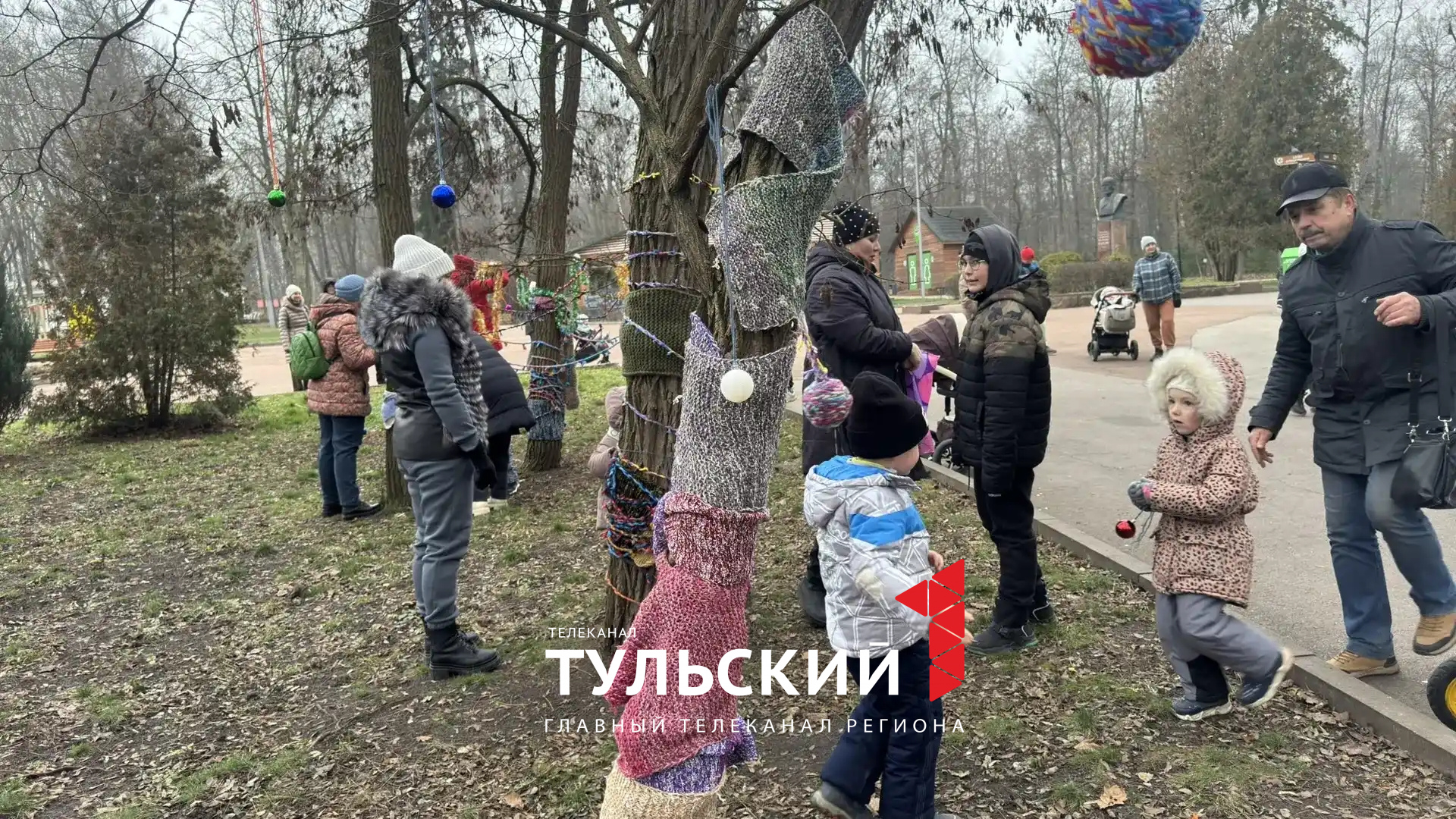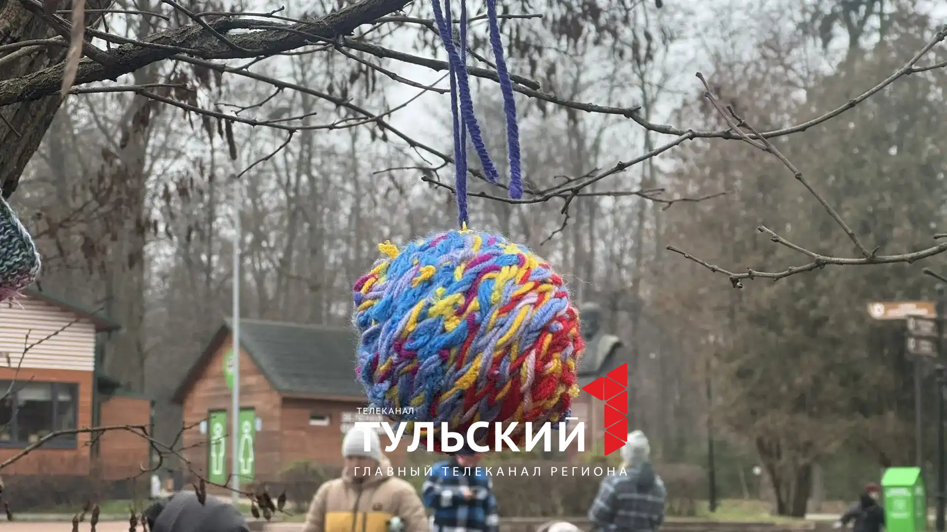 Свыше 15 км пряжи дети и их родители обмотали деревья. Акция прошла в рамках проекта «Зима по-тульски». Игровая программа называется Ярнбомбинг, или уличное вязание.