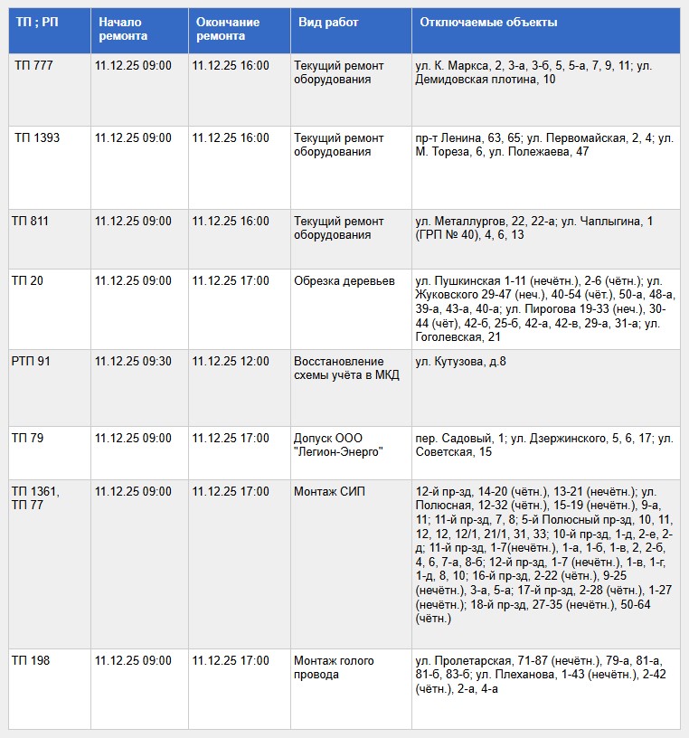 Часть Тулы останется без света 11 декабря. Об этом сообщают «Тульские городские электрические сети».