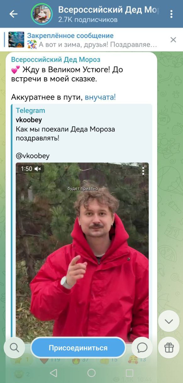 Дед Мороз узнал о новогодней поездке туляков и отреагировал в своем телеграм-канале: