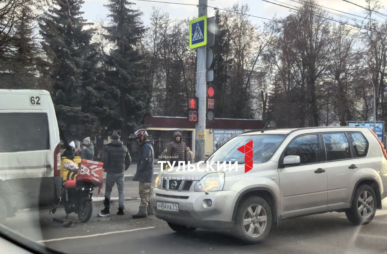 Курьер службы доставки попал под колеса маршрутки на проспекте Ленина в Туле