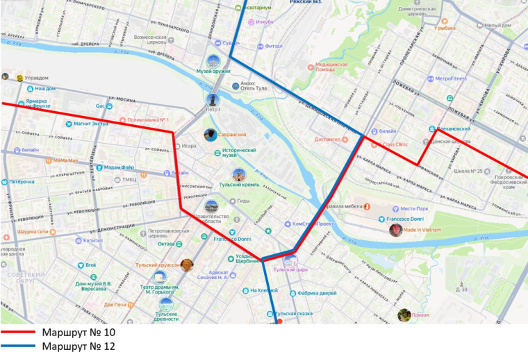 - По трамвайным путям, пролегающим по улице Октябрьской и Советской на участке от Тульского государственного музея оружия до Мосина.