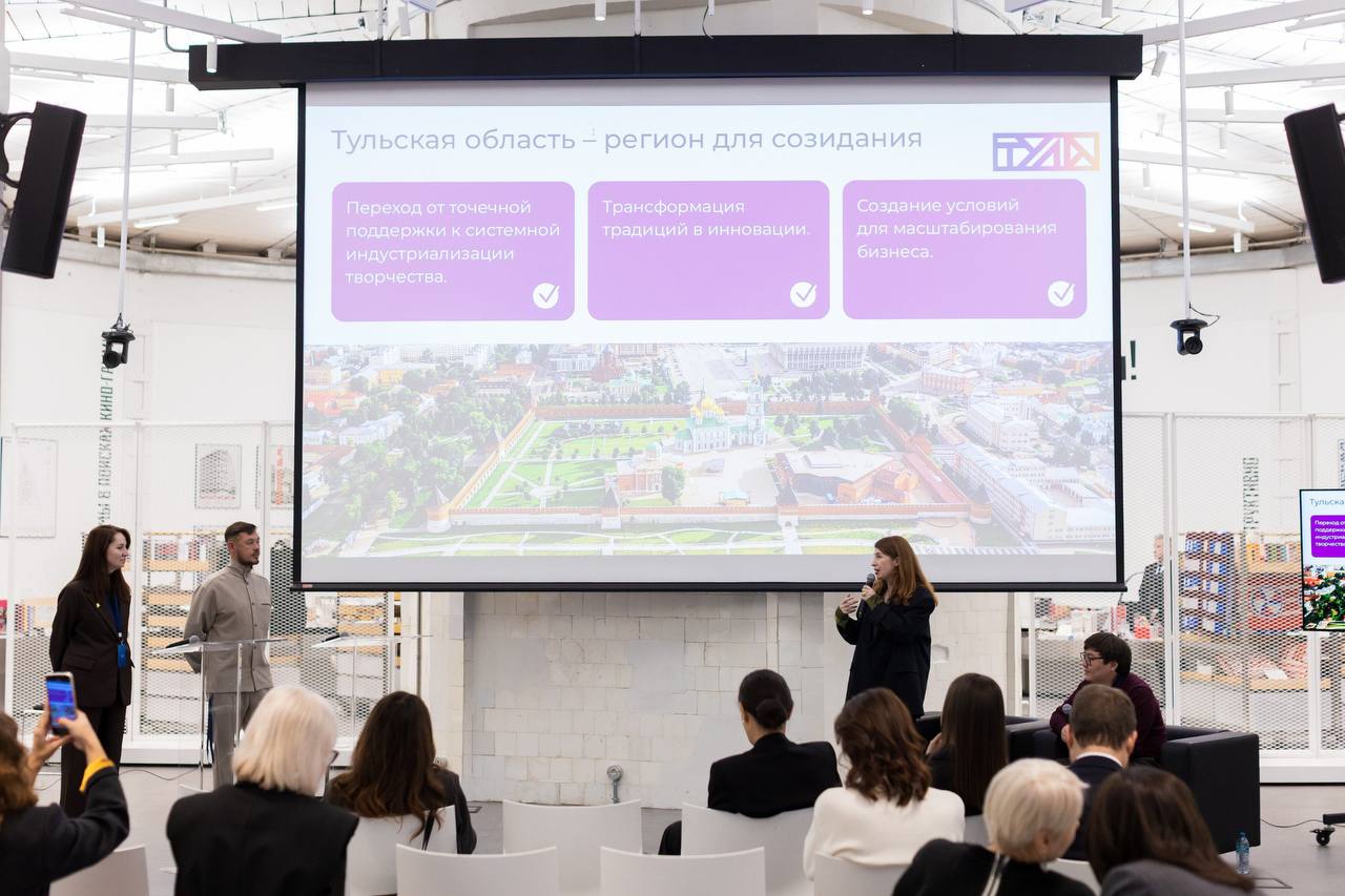 В столице прошла презентация стратегии роста креативной экономики регионов до 2030 года, где команда представителей Тульской области продемонстрировала собственный проект развития творческого сектора. Об этом сообщает Дмитрий Миляев в мессенджере MAX.