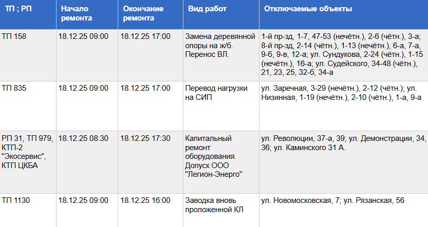 Полный список адресов и график отключений – ниже: