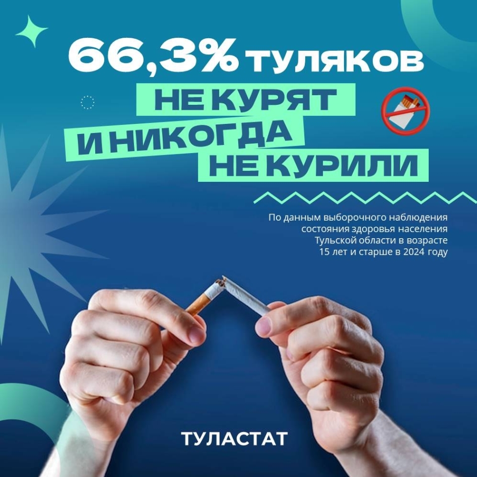 66,3% жителей Тульской области не курят и никогда не курили. Об этом сообщает «Туластат».
