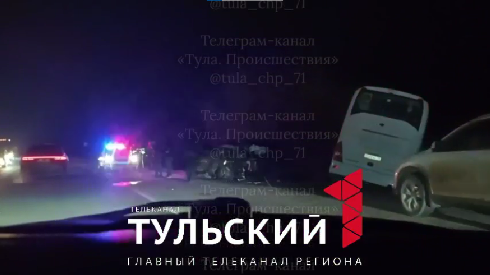 Как стало известно "Первому Тульскому", авария произошла вечером 19 декабря на Новомосковском шоссе. На видеороликах с места происшествия видно, что помимо автобуса поврежден еще и легковой автомобиль. На месте ДТП работают скорая и ДПС.