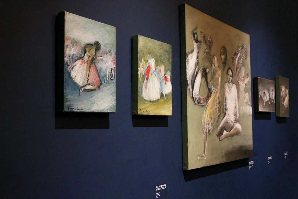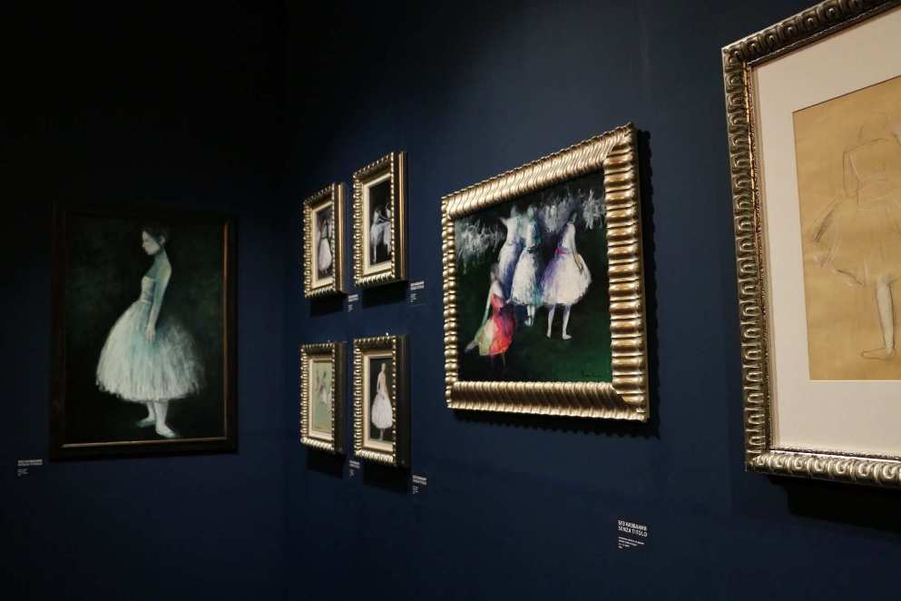 Выставочные работы посвящены подруге мастера - балерине Карле Фраччи. Автор в своих работах приоткрывает закулисье сцены: репетиции, минуты отдыха, моменты, в которые артисты готовятся к выходу, продумывают выступления. Все сюжеты – эпизоды из жизни.