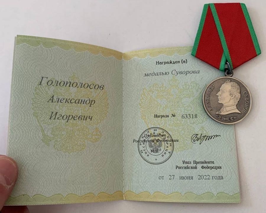 Александр Голополосов награждён медалью Суворова и медалью «За самоотверженность и профессионализм».