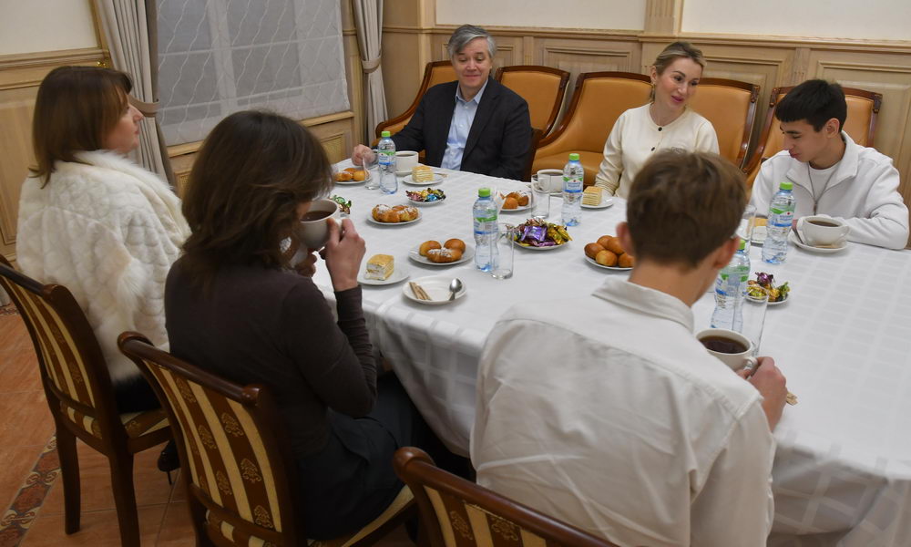 Беседа протекала в дружеской и непринуждённой обстановке. Завершилась встреча коллективной фотосессией и вручением подарков.