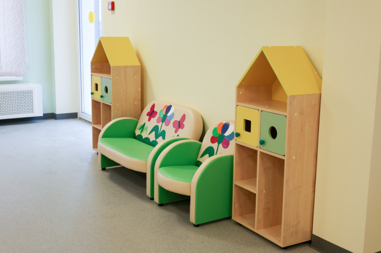 Детский сад двухэтажный и включает три группы по 25 человек: младшая (1-3 года), средняя (3-5 лет) и старшая (5-7 лет).