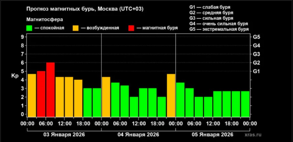 Согласно прогнозам экспертов, магнитные бури будут беспокоить жителей центральных регионов еще и в воскресенье, 4 января.