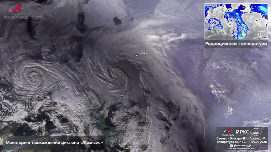 "Роскосмос" создал ролик из снимков многозональных сканирующих устройств — спутников серий "Электро-Л" и "Арктика-М". Фотографии сделаны с 7 по 9 января.