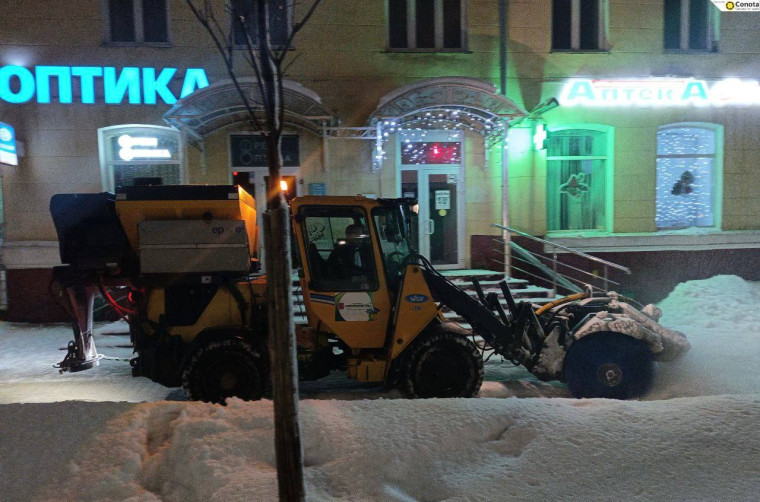 От последствий непогоды очищают дороги и тротуары, остановочные площадки. Также дороги орабатывают противогололедными материалами – за сутки израсходовали более 1 300 тонн реагента и песко-соляной смеси.