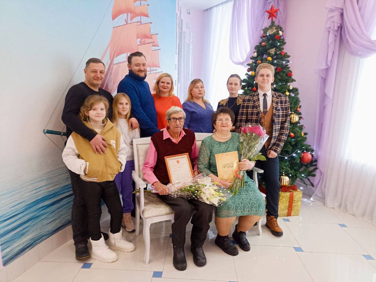 К примеру, в Кимовском отделении ЗАГСа Александр и Наталья Сережкины отпраздновали золотую свадьбу вместе с детьми, внуками и правнуками.