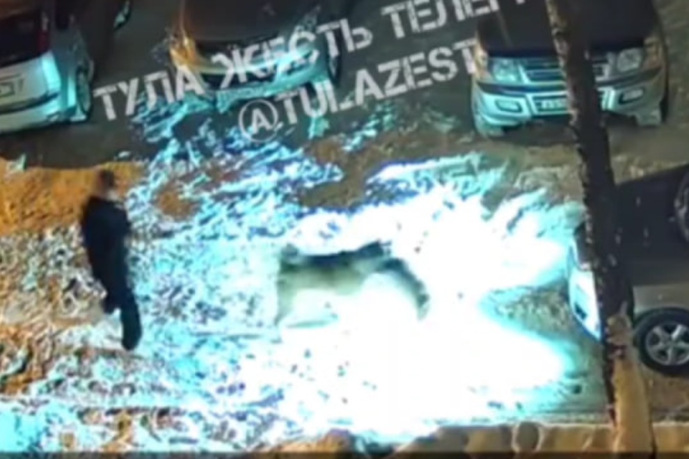 На кадрах видно, как молодой человек пытается спасти своего питомца из хватки более крупного пса. Животное никак не хотело отпускать любимца и кидалось на него несколько раз.