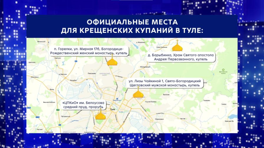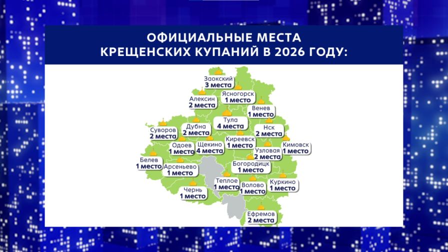 Традиционные купания пройдут в ночь с 18 на 19 января. Жители области могут окунуться в воду в 36 местах, четыре из которых - в Туле.
