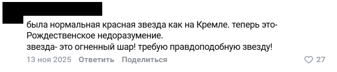 В ноябре 2025 года мужчина прокомментировал пост о городской елке в одном из местных сообществ - его возмутило новое украшение на верхушке дерева.